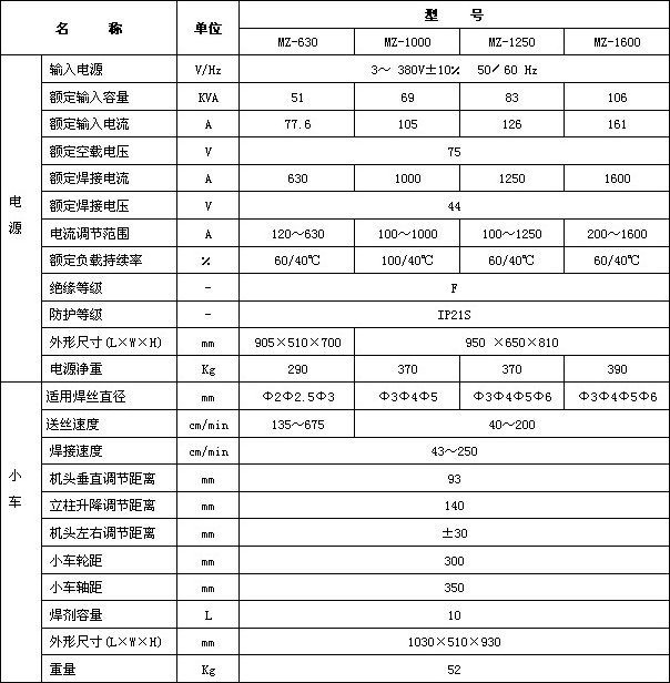 MZ-630、1000、1250、1600可控硅整流式自動(dòng)埋弧焊機(jī)