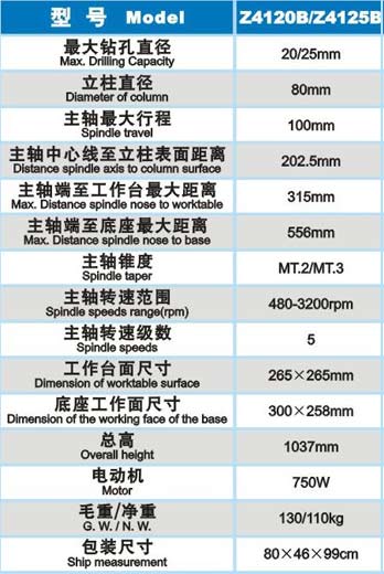 工業臺鉆 -> Z4120B/Z4125B