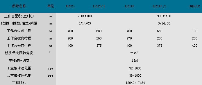 X6225系列萬能回轉頭銑床式萬能型銑床的派生產品, 機床結構可靠,性能良好,質量穩定。該機床除保持了萬能銑床原有的全部性能. 特點外,還可以做立. 臥兩用銑削和輕型立銑使用。45°萬能回轉頭可以加工空間任意角度的凸臺. 斜面和溝槽,具有比萬能銑床更為廣泛的使用范圍。 45°萬能回轉頭復合運動,可以獲得空間360°方位的調整, 主軸具有高度的靈活性。 行程大, 加工范圍廣, 精度高, 鋼性好。 機床結構布局新穎. 操作. 維修方便。 床身矩形導軌及縱. 橫導軌表面感應淬火,精度保持性好。 采用磨齒工藝,傳動平穩,機床噪音低,絲杠螺母等氣體軟氮化,壽命長。 用戶特殊定貨要求,可在X. Y. Z方向配置滾珠絲杠. XX6225系列萬能回轉頭銑床還可配置數顯系統。 數顯分辨率 0.01mm .重復定位精度 ±0.01